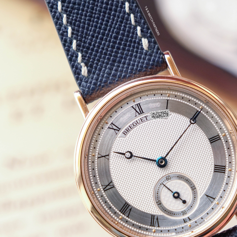 當你翻開寶玑最新的產品錄,你會發現現行款Classique經典系列中幾乎很難再見到36mm以下的型號。在大部分小於36mm的Classique經典系列腕表都已換代並尺寸變大的2010年代,有一個生產了多年的經典型號還在做著“最後的抵抗”,這便是我們今天的主角Breguet Classique ref.5907。小三針錶盤的設計其實是非常考驗機芯和錶盤的比例的,中心針軸和小錶盤的距離就直接決定了這塊錶的美感,所以34mm 是一個幾乎完美的尺寸,他個後繼者錶盤做得太大,讓整錶失去了精緻感。