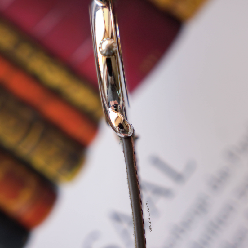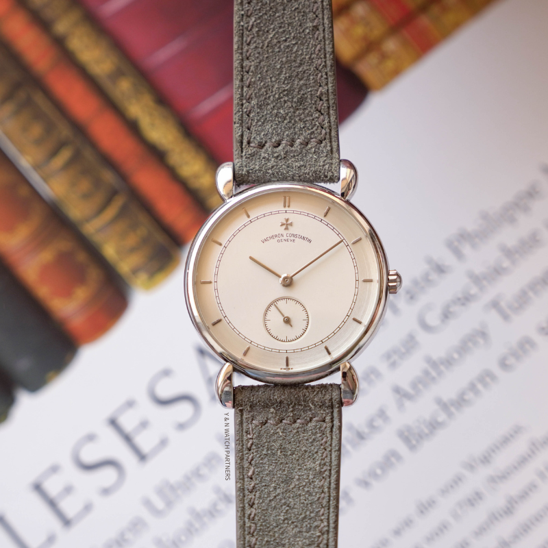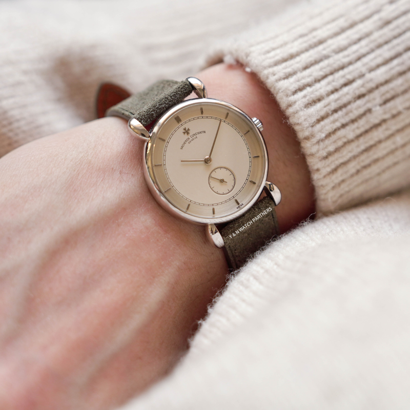 江詩丹頓Les Historiques系列92084發布於1989年,復刻了品牌1940年代焊接的水滴造型的錶耳設計,由於那個年代生產加工技術的限制,手藝嫻熟的珠寶工匠會採用蠟模灌注錶耳再焊接到錶殼中框上,所以後世的我們有幸看到在上世紀30-60年代間,有如此多造型特別的腕錶出現,並且在當時,這種蠟模灌注錶殼的起訂量可以是1件起,而不是像今天數控機床雕刻需要批量,所以天馬行空的珠寶工匠們和製表師們有了無窮創意的火花。今天這枚92084 擁有Two-tone的錶盤,內圈奶油質感,外圈拉絲如綢緞般質感,再加上小三針的錶盤設計,令整隻手錶顯得復古而精緻。機芯搭載cal.1014手動上鍊機芯,由本工作室完成保養,走時狀態良好,享有一年保養,工作室現貨,歡迎試戴。